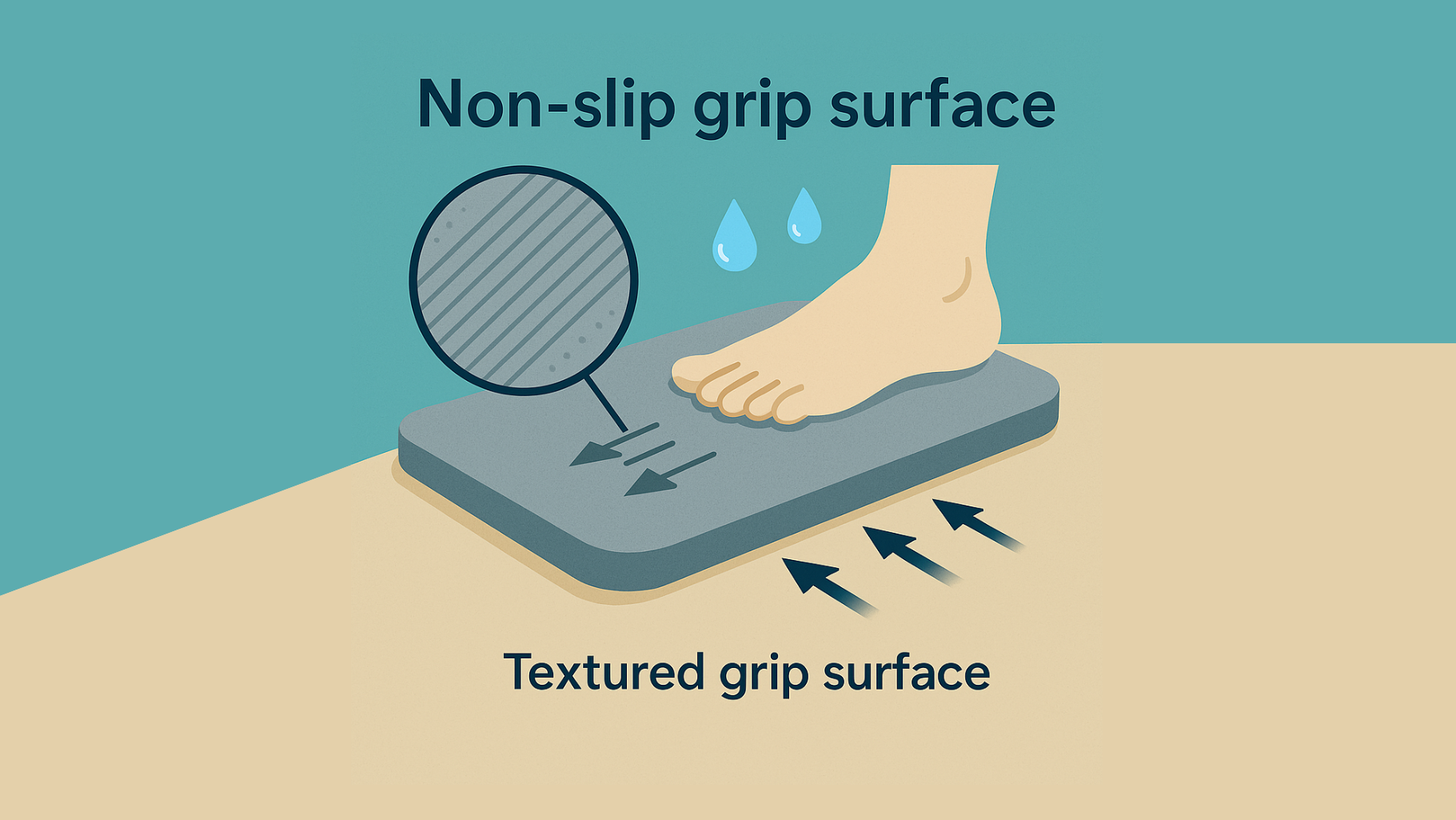 Textured top and solid base give you planted footing. Step out with confidence. No squirming, no skating, just steady traction even when wet.